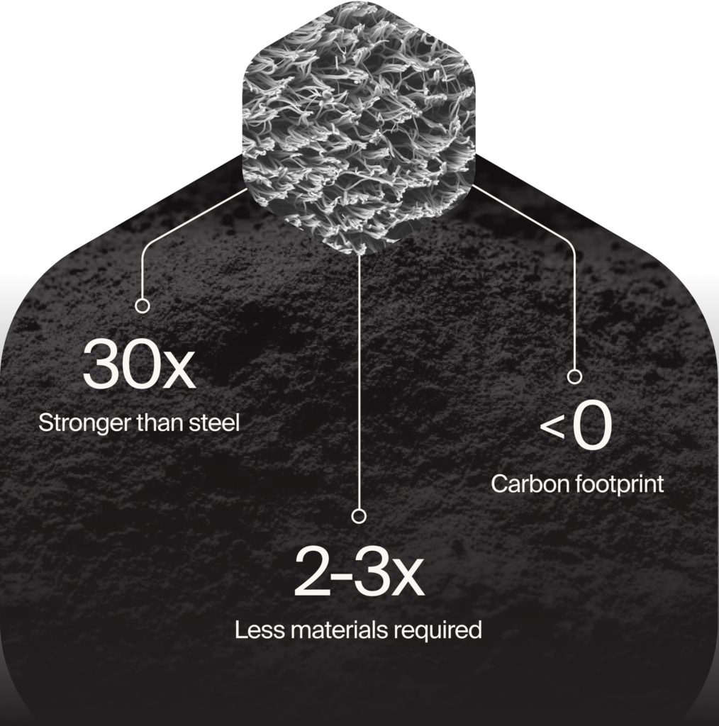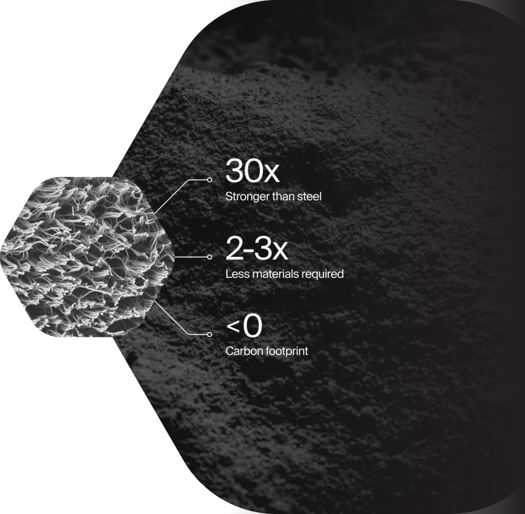 With a patent-protected catalytic process, we use CO2, methane and waste heat to create tangible carbon materials that enhance industries like construction, composites, and batteries. By rebuilding waste into something valuable, our scalable, repeatable process helps industries grow sustainably while advancing a low-carbon future.